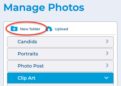 When you are ready to upload your own clip art, click New folder to add a new folder for organizing your clip art in the software.