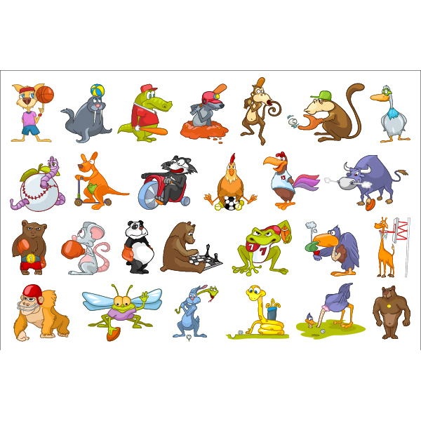 Tags: animal, baseball, basketball, bear, bird, bison, bull, chess, crocodile, football, frog, giraffe, golf, gorilla, hen, insect, kangaroo, mole, monkey, mouse, ostrich, panda, playing, rabbit, raccoon, rugby, snake, sport, vulture, worm