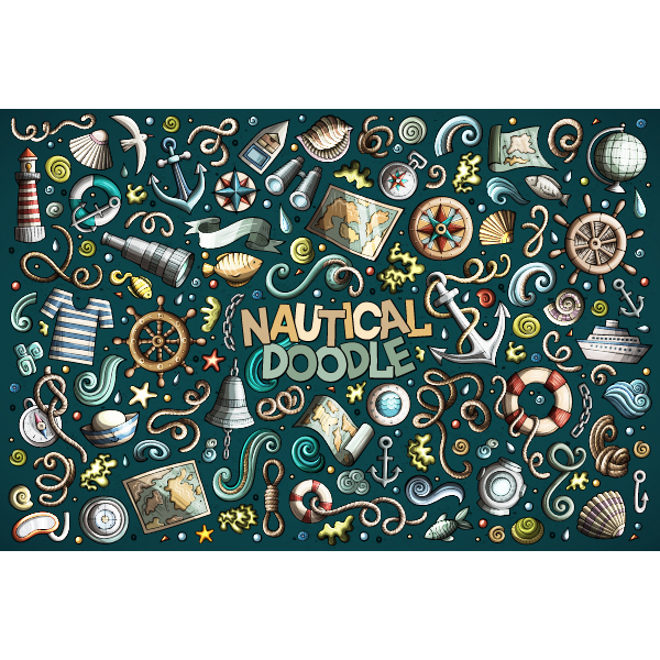 SKU: stock_182074462 Categories: Decorations, Doodles, General Objects, Ocean, Places, Transportation and Travel Tags: anchor, captain, compass, fish, map, nautical, ocean, paddle, rope, sail, sailor, seashell, shell, starfish, telescope, transportation